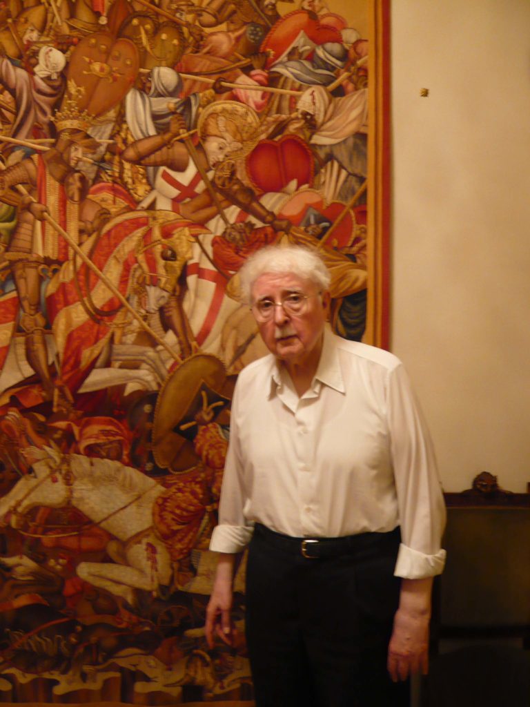Pere María Orts i Bosch junto a uno de sus tapices / 2011/ pic by © M.Gascó-Alcoberro